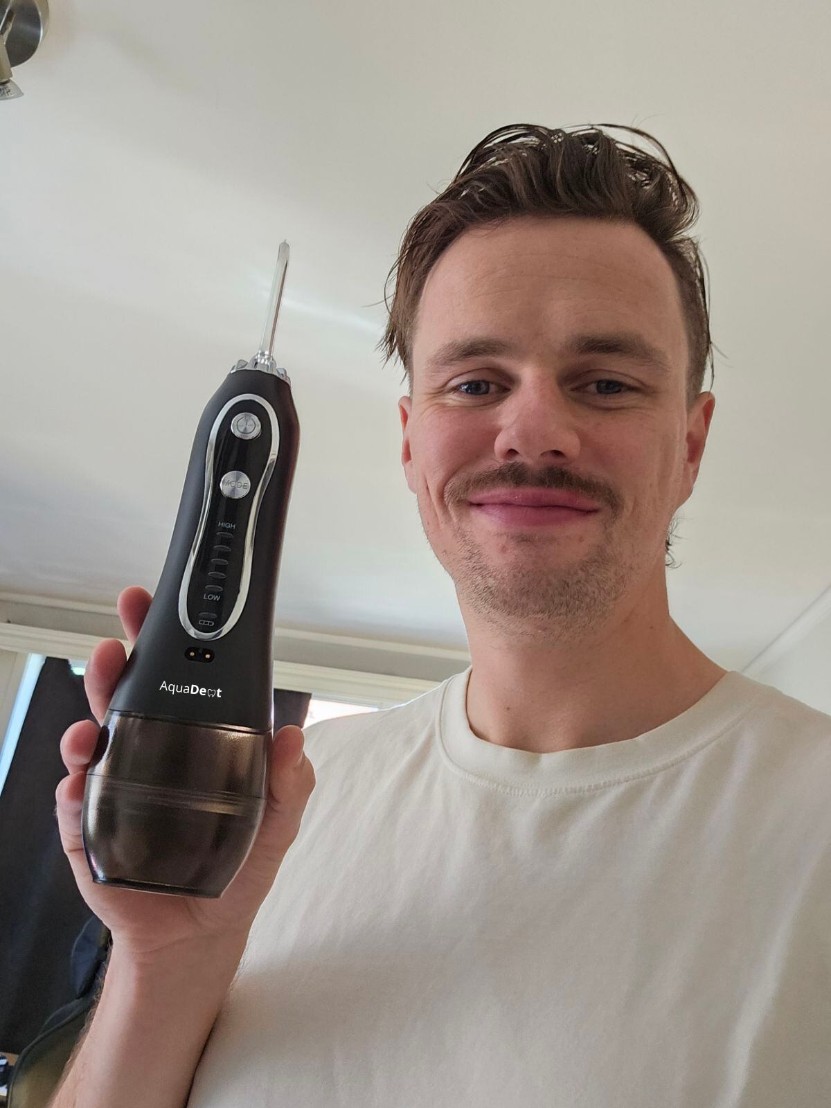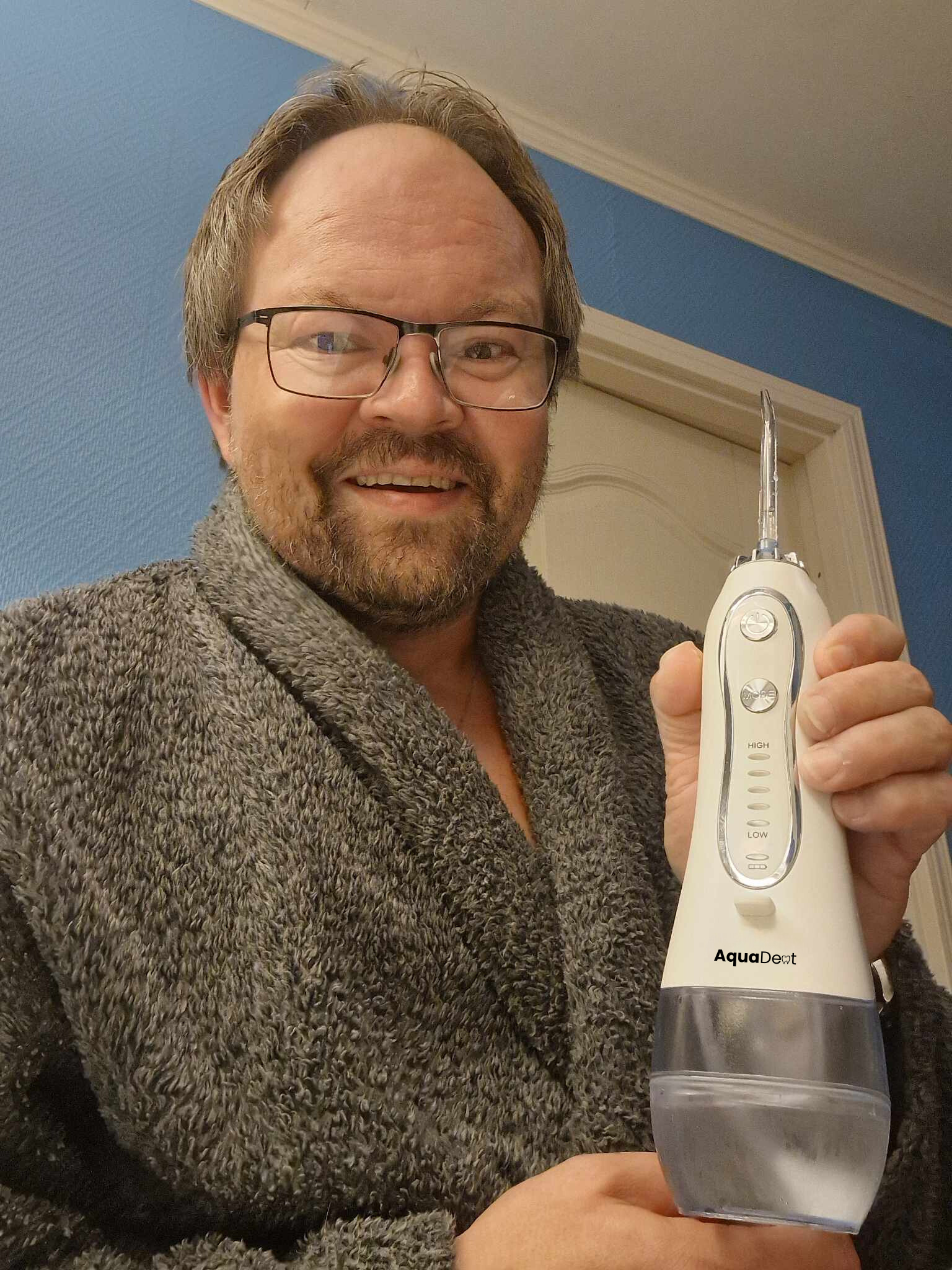 Jeg elsker denne flosseren! Stor vanntank, enkel å bruke, og reisevesken er genial. Ulike innstillinger gjør den behagelig for mitt sensitive tannkjøtt 😊